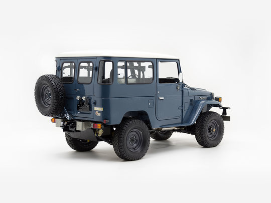 Cadet Blue is a Toyota factory color, and here, it creates a commanding presence with the Land Cruiser’s exposed bolts, iconic lines, and heavy rubber.